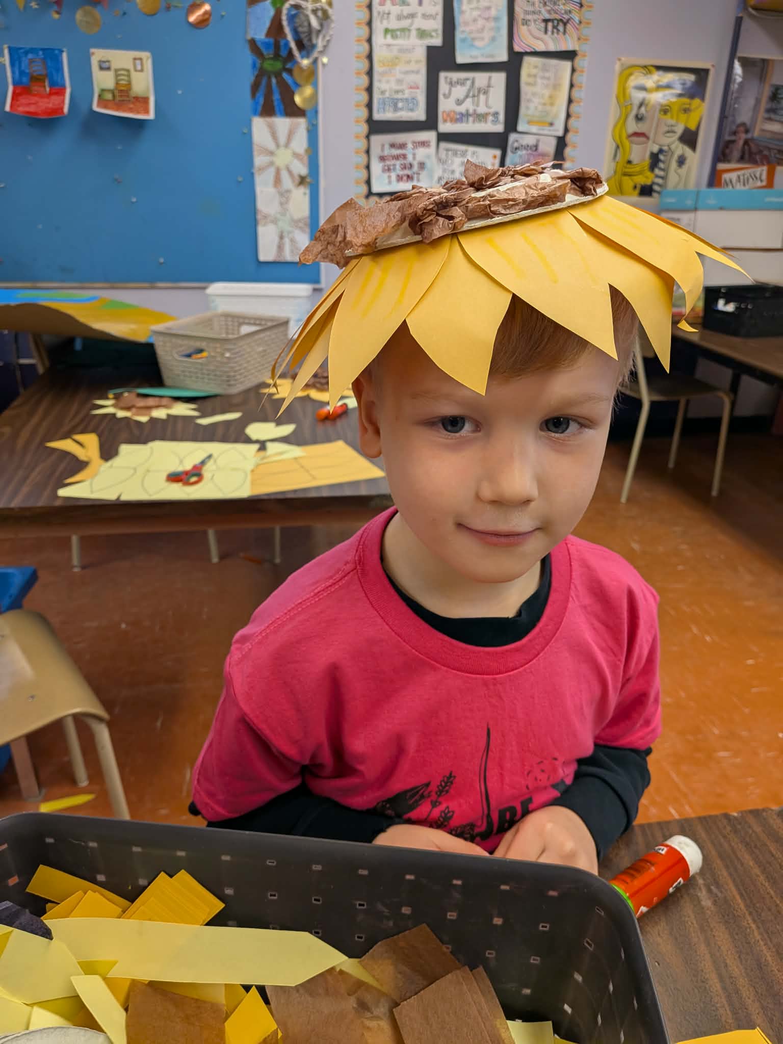 La maternelle a travaillé dur en classe d'art pour créer des tournesols inspirés de Vincent Van Gogh.