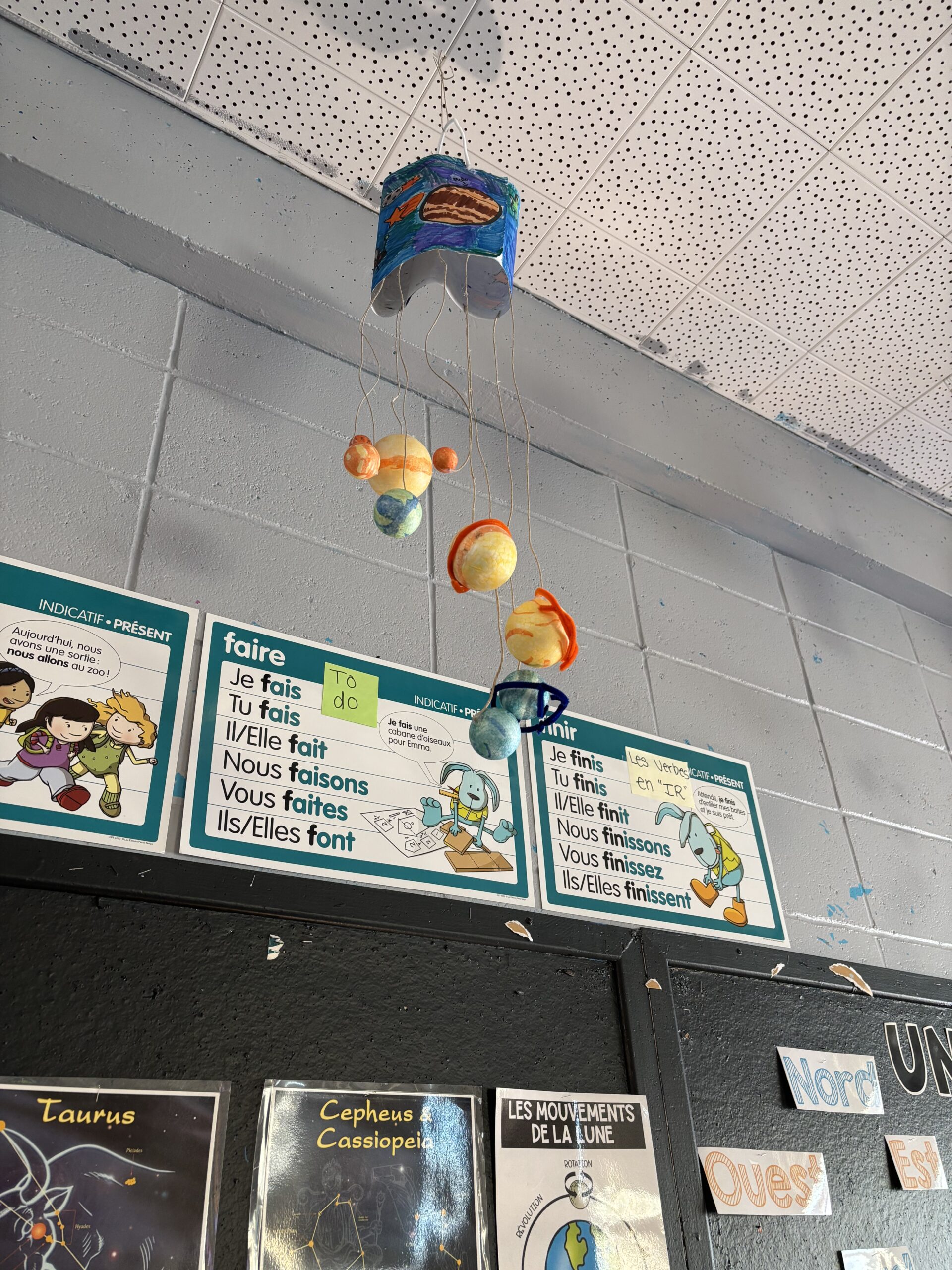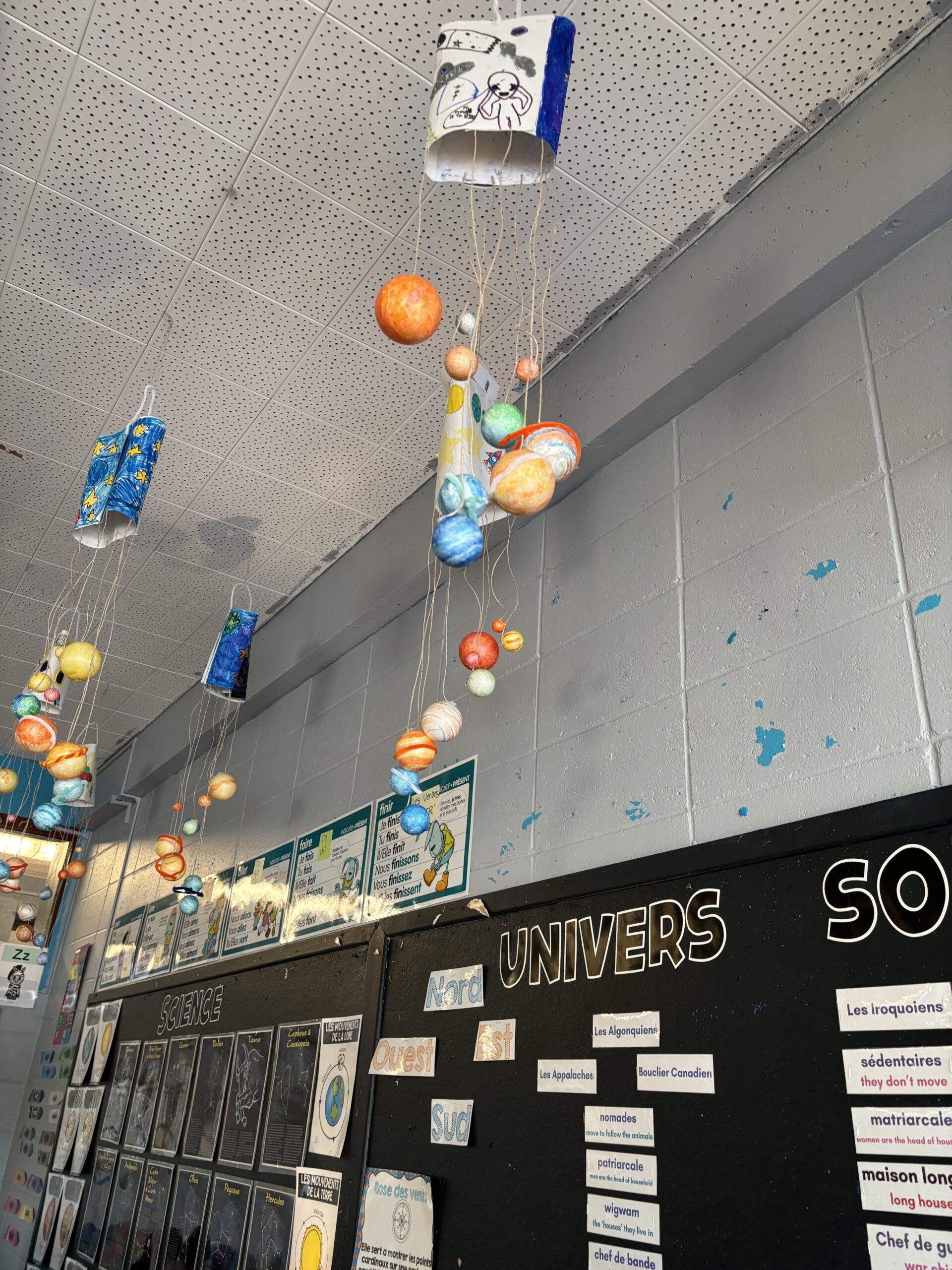 Les classes 3A et 3B ont travaillé dur pour découvrir notre système solaire, les étoiles et notre galaxie. Nous avons fabriqué des systèmes solaires amusants pour accompagner notre unité.