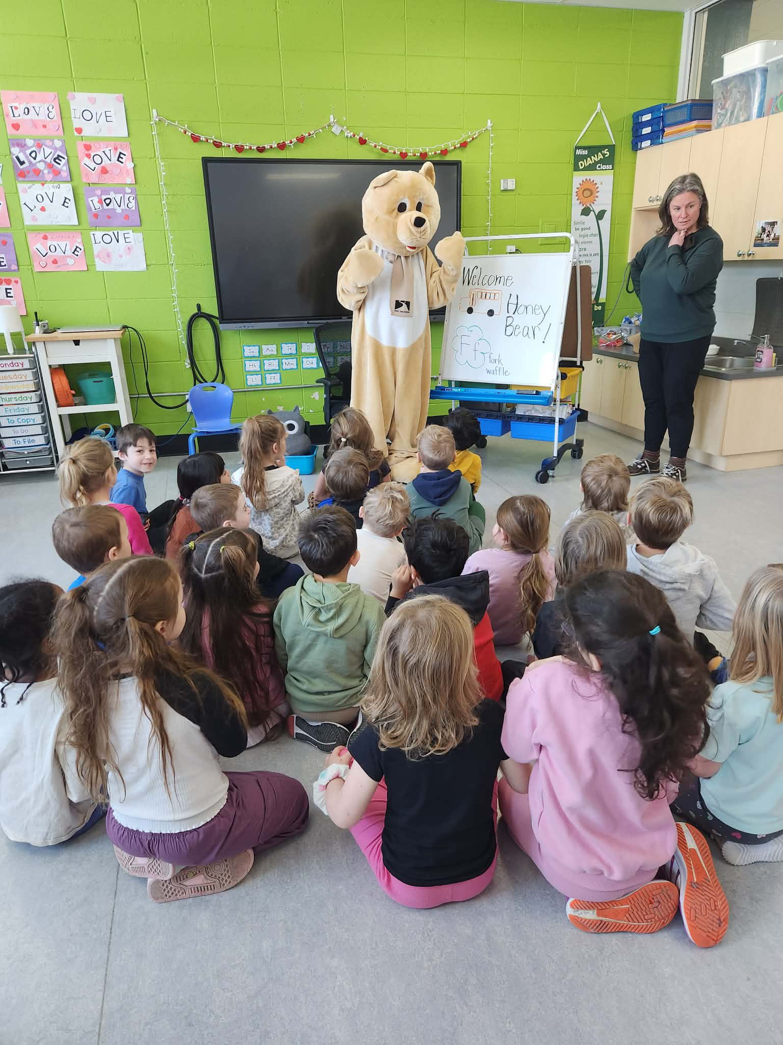 Cette année, la campagne de sécurité des autobus scolaires s'est déroulée de la façon suivante 26 janvierth au 6 févrierth, 2026. Honey Bear a visité les classes de K4, K5 et de première année, rappelant aux élèves les règles de sécurité dans le bus. Honey Bear a certainement reçu de nombreux câlins !!!